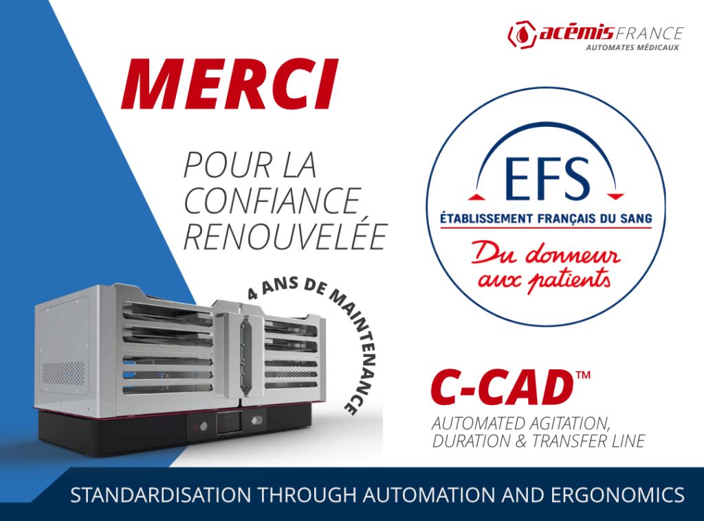 Thank you for the renewed confidence shown by the regional French Blood Transfusion Establishments and the national purchasing department at EFS.